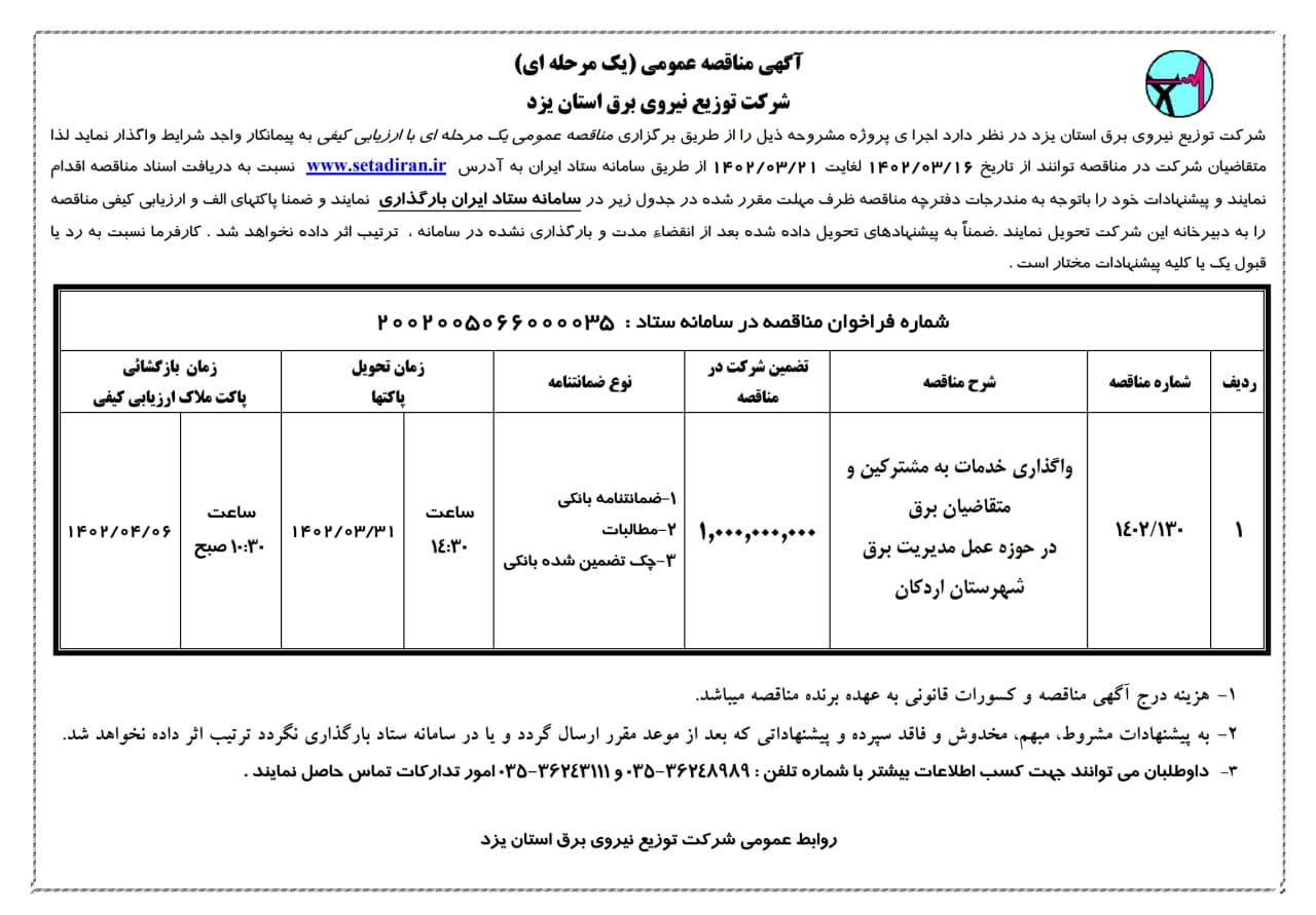انجام فعالیتهای خدمات مشترکین - اردکان-1402