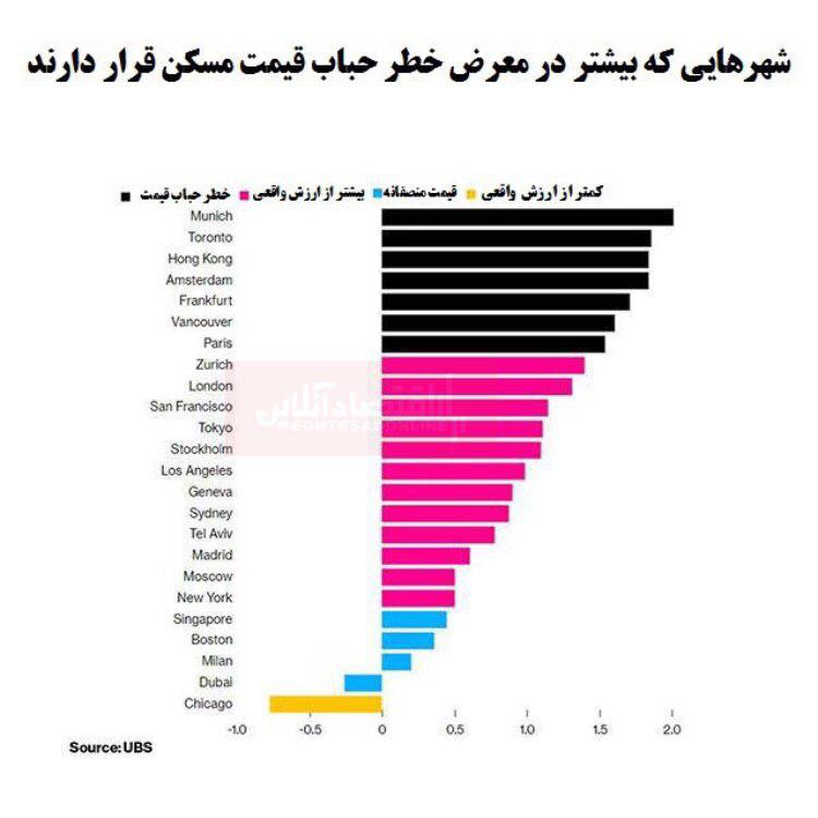 در نمودار ارائه شده، شهرهایی که بیشتر در معرض خطر حباب قیمت مسکن قرار دارند را مشاهده می‌کنید.