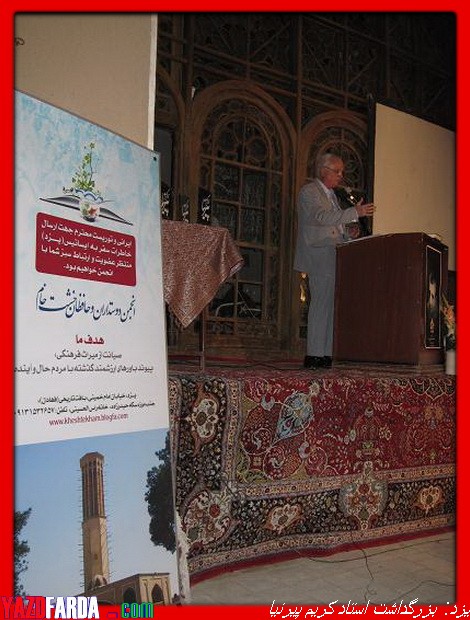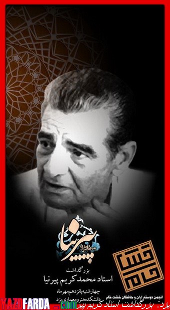 یزدفردا "با پيشنهاد ، پيگيري و مشاركت انجمن دوستداران و حافظان خشت خام و با همكاري و همت دانشكده معماري يزد،سازمان ميراث فرهنگي يزد و دانشجويان معماري مراسم بزرگداشت استاد كريم پيرنيا با حضور دوستداران باورهاي ماندگار ايران زمين در یزد بصورت با شكوه و به یاد ماندنی برگزار شد.