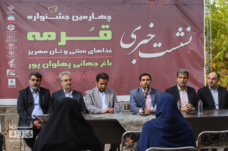 نشست خبری «محمد دهقان بنادکی» فرماندار مهریز در حاشیه چهارمین جشنواره قرمه، غذاهای سنتی و نان با حضور جمعی از مسئولین این شهرستان و اصحاب رسانه در باغ جهانی پهلوانپور برگزار شد.