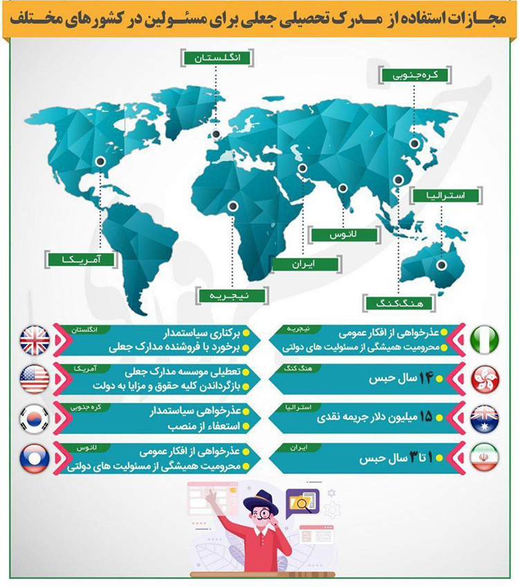 در ادامه این گزارش نگاهی به مجازات سایر کشورهای برای جعل مدرک مدیران می اندازیم.
