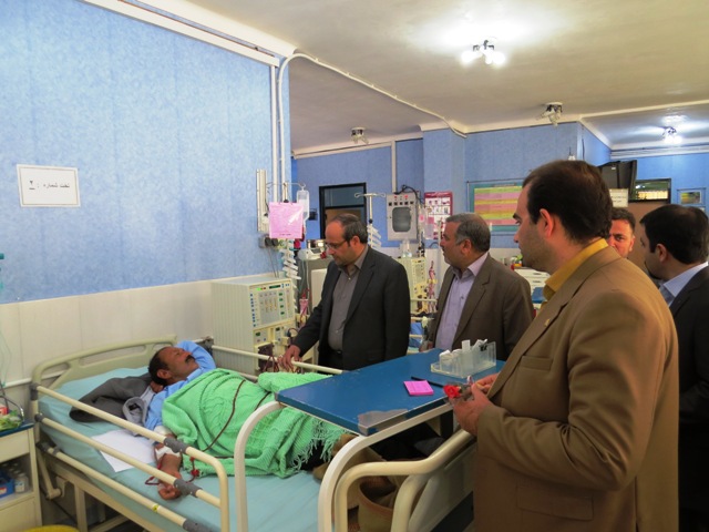 محمدعلي عبداله زاده نماينده مردم طبس، عليرضا عبدالرحيمي رييس شوراي اسلامي شهر و علي اشرفيان شهردار طبس با حضور در بيمارستان شهيد سيد مصطفي خميني از بيماران عيادت و به تيم درماني خسته نباشيد گفتند.