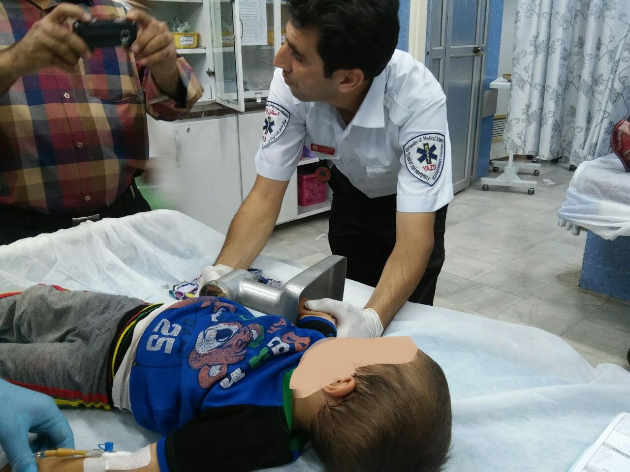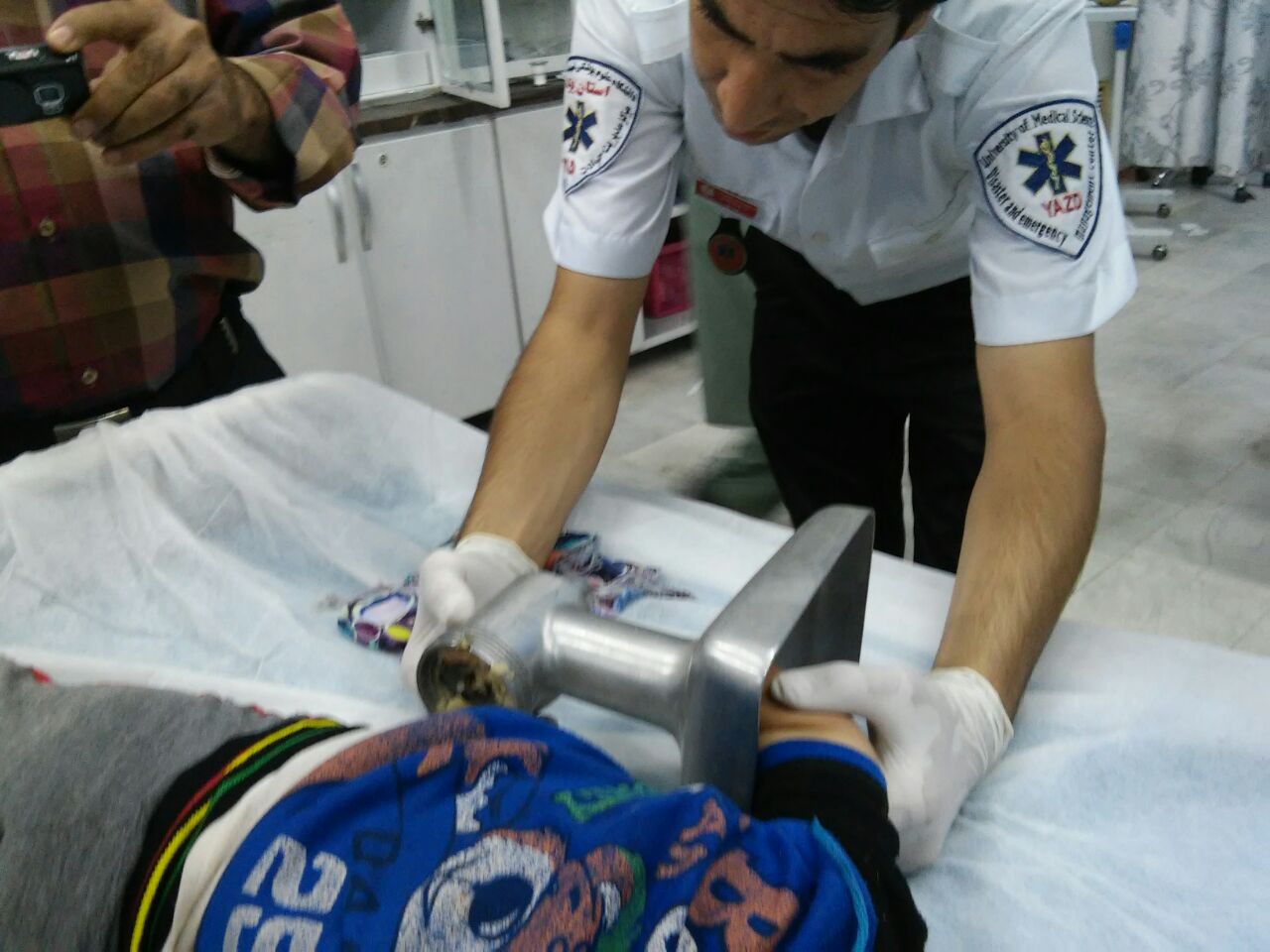 با انتقال کودک توسط تکنسیتهای اورژانس 115  پس از اقدامات حمایتی اولیه  به اورژانس بیمارستان فرخی و با همکاری تیم امداد سازمان آتشنشانی یزد دست کودک از چرخ گوشت آزاد شد .