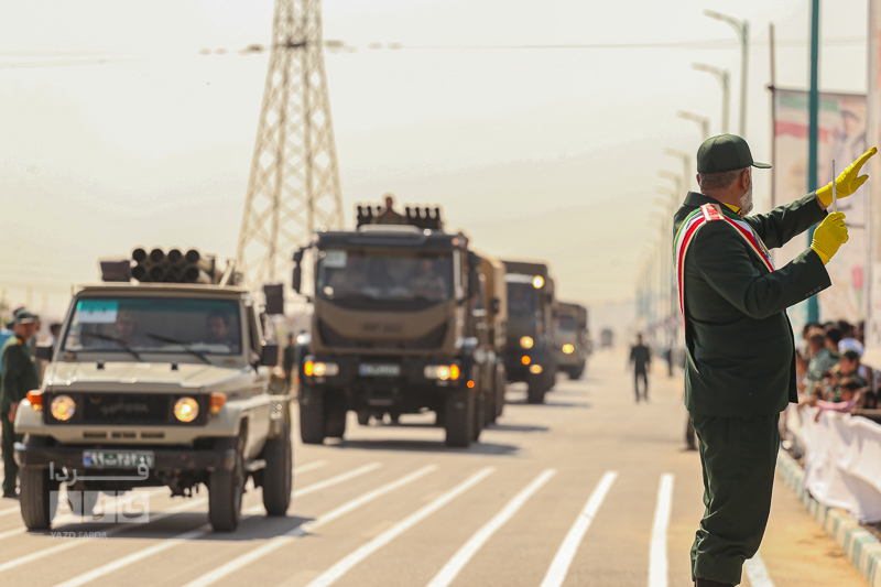 به مناسبت ۳۱ شهریور ماه و آغاز هفته دفاع مقدس رژه نیروهای مسلح در بلوار دفاع مقدس یزد با حضور مسئولان نظامی و انتظامی برگزار شد.